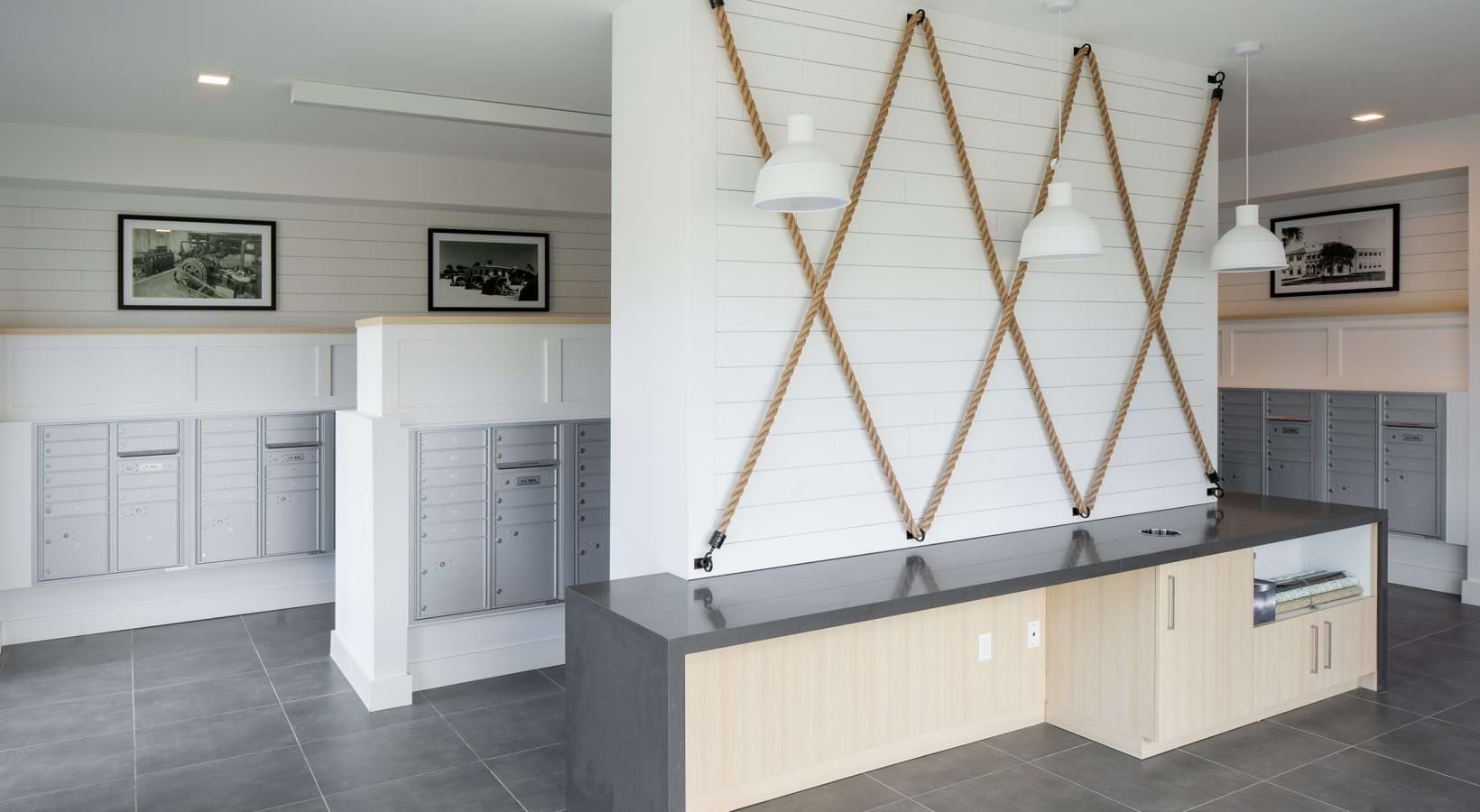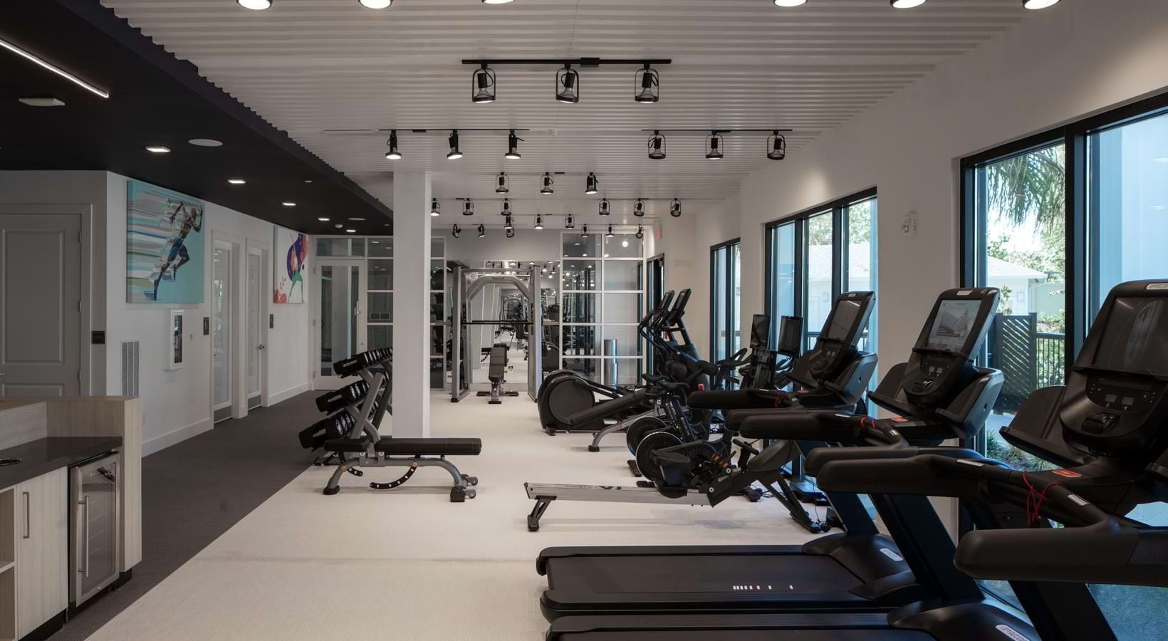 • a room with exercise equipment and a counter