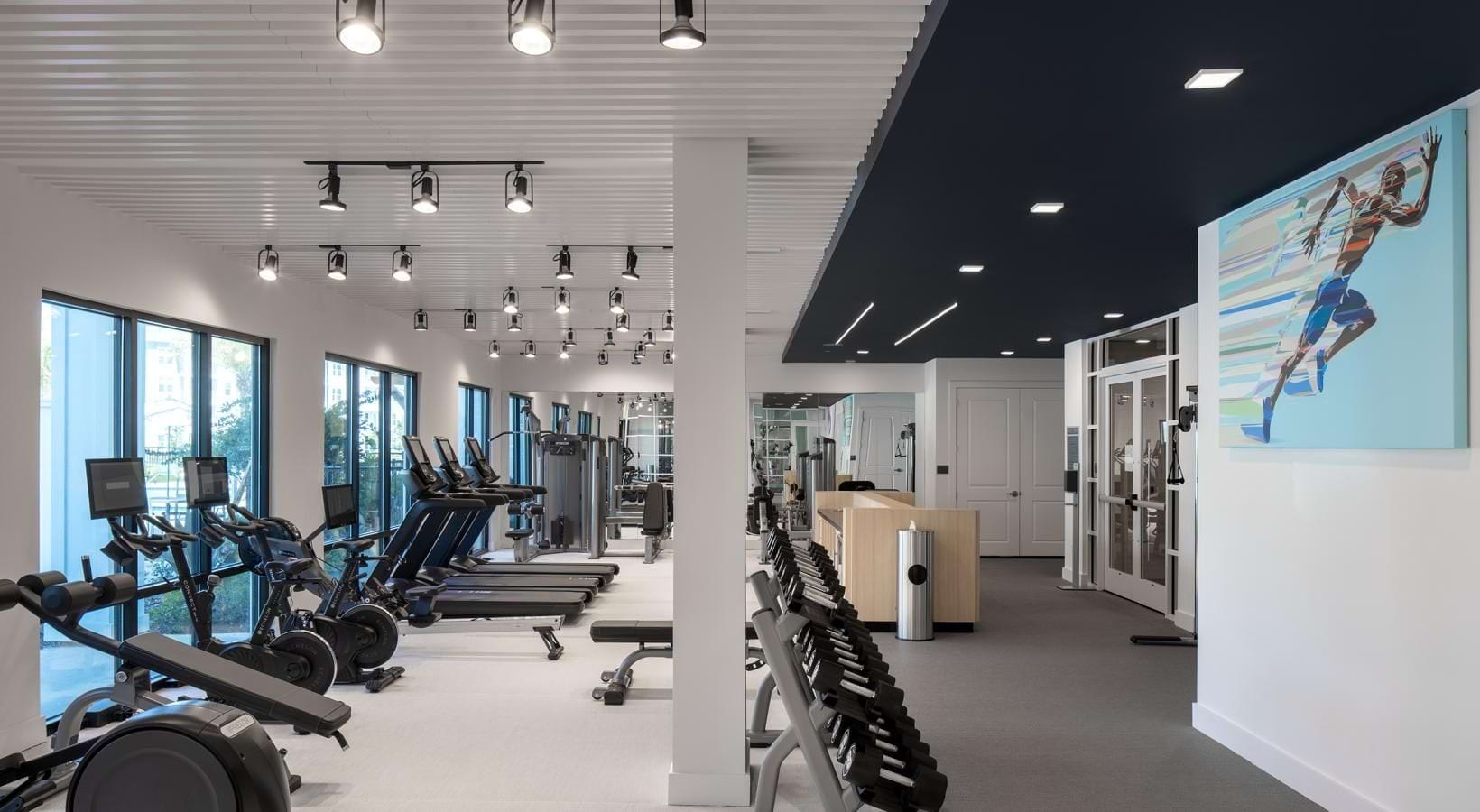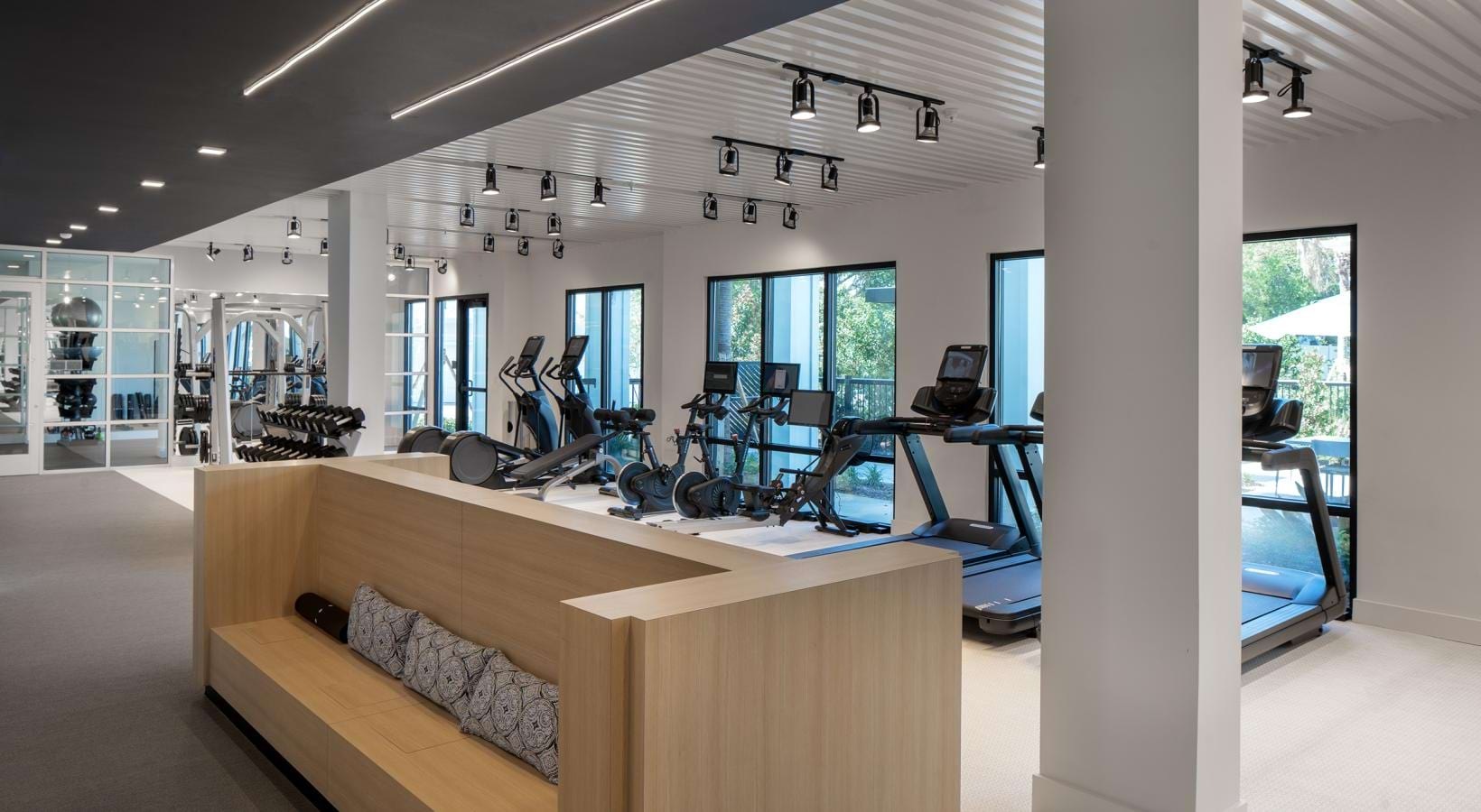 • a gym with exercise equipment