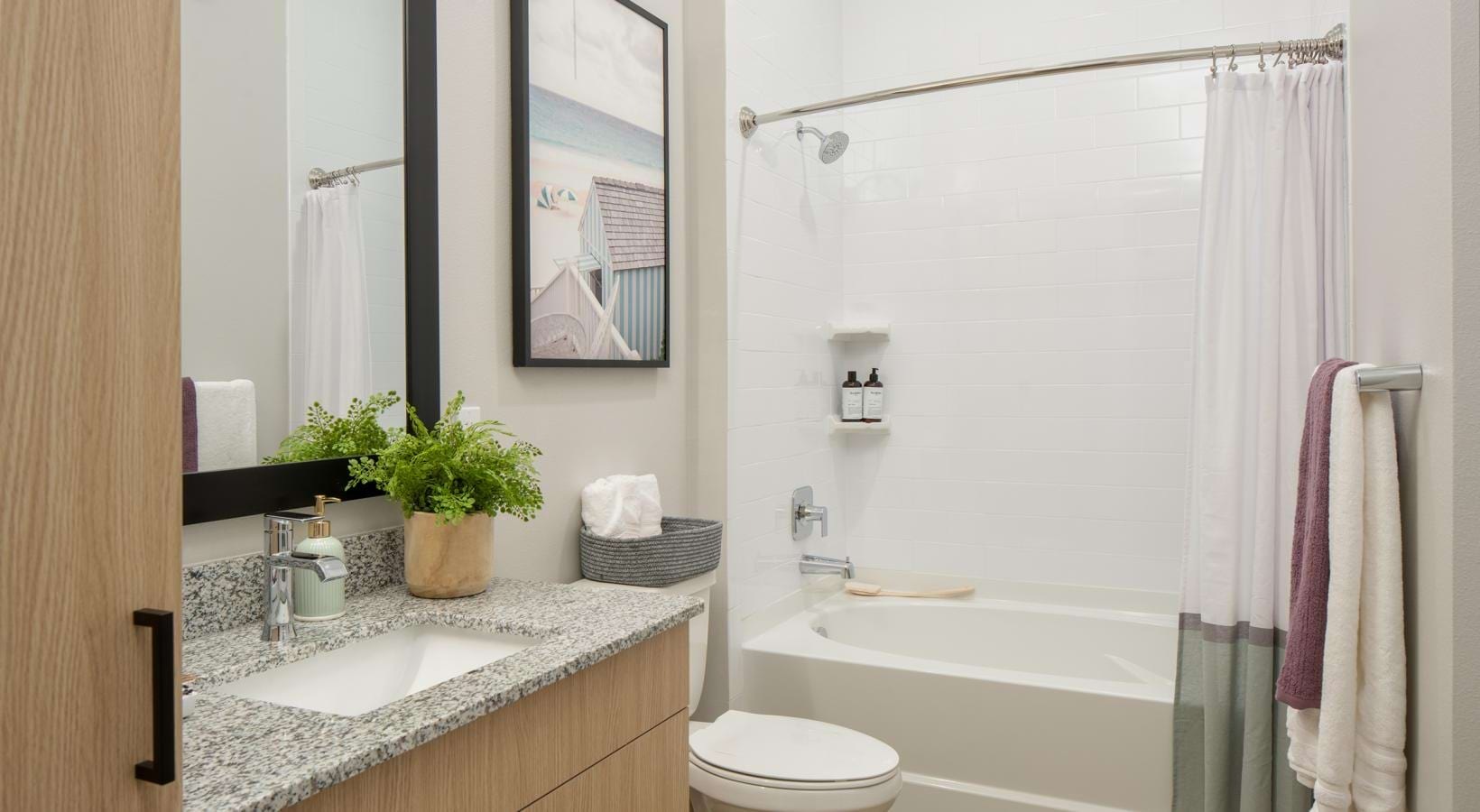• a bathroom with a tub sink and toilet