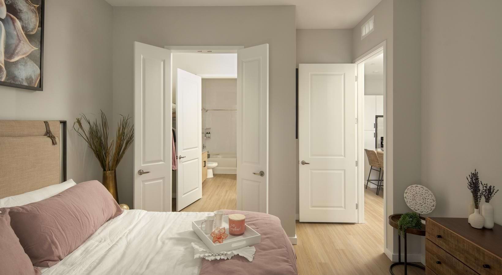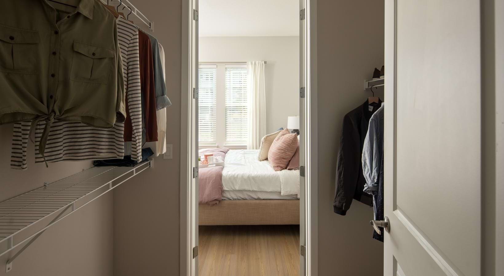 • a bedroom with a bed and closet